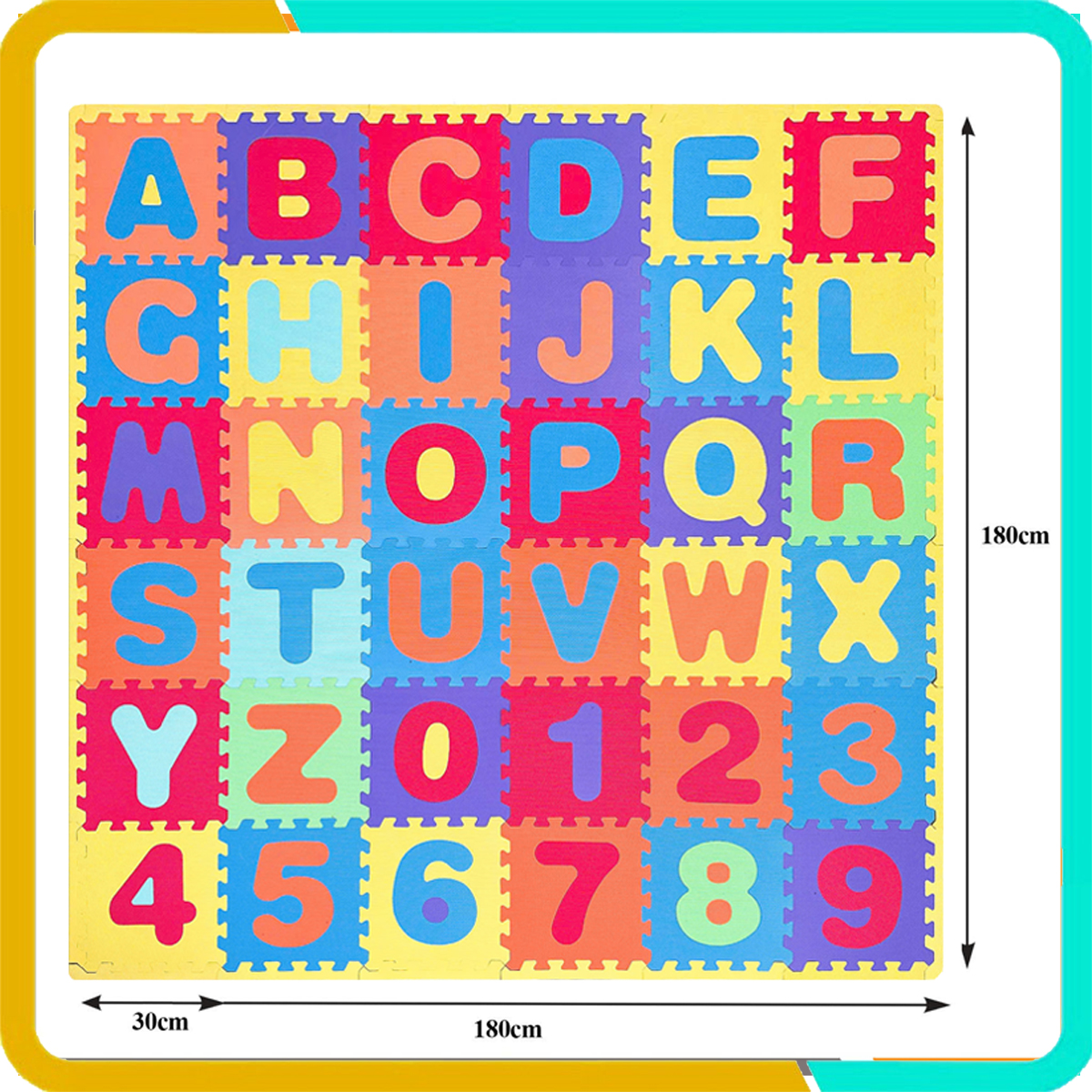 Thảm Chơi Cho Bé Bộ 36 Tấm Phối 4 Màu Pastel ( 26 Chữ Cái + 10 Chữ Số), Kích Thước Mỗi Tấm 30x30x1cm, Tiêu Chuẩn Châu Âu