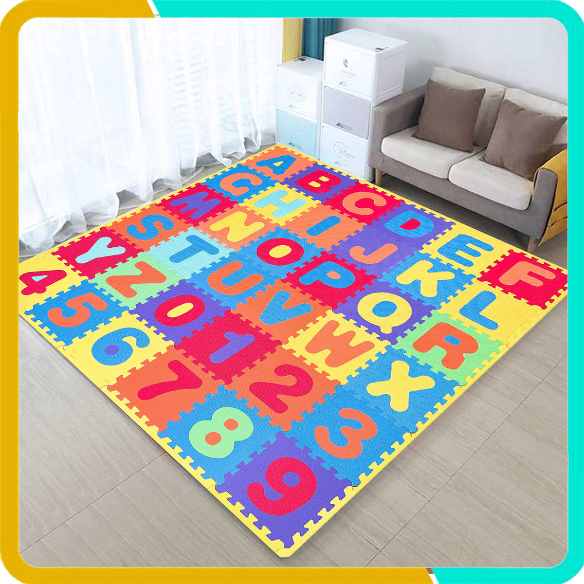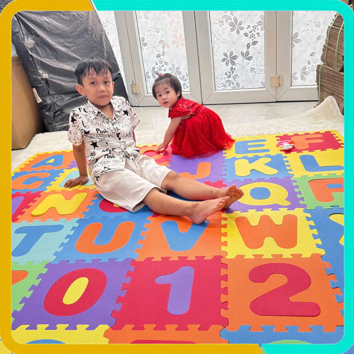 Thảm Ghép Cho Bé Bộ 36 Tấm Phối 7 Màu mang lại điều tuyệt với nhất đó chính là tính giáo dục cao. Bé vừa học, vừa chơi, nhanh chóng nhận diện được các mặt chữ và số đếm. Thảm Ghép Cho Bé này sẽ luôn đồng hành cùng bé yêu nhà bạn suốt 1 chặn đường dài. Mẹ có thể chơi trò lắp ráp chữ và số cùng bé, hay gọi tên mặt chữ và bé chỉ ra đâu ra chữ A, chữ B, đâu ra số 1, số 2. Hay bé nhà bạn lớn hơn thì có thể chơi trò lắp ghép chữ số như số 10, số 20, hay lắp ghép thành hình vuông, hình chữ nhật....