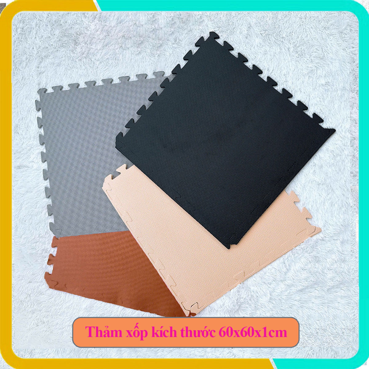 Thảm Xốp Trải Sàn Màu Xám, Nâu, Kem, Đen 60x60x2cm, Độ Bền Cao, Sản Xuất Tại Việt Nam, Mới 100%