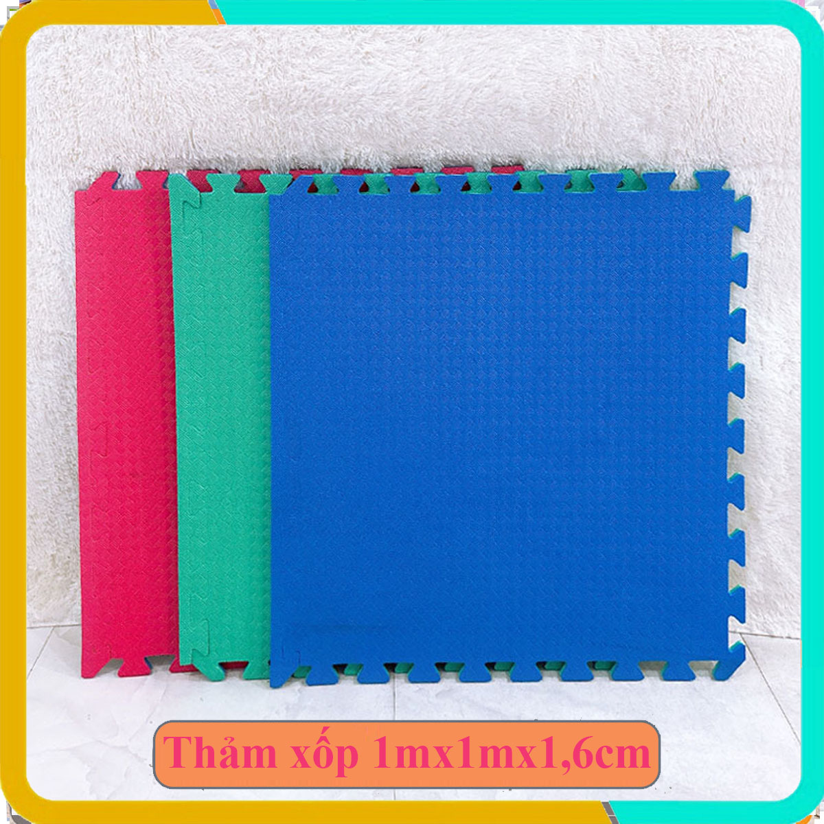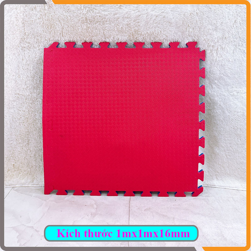 Thảm xốp phòng gym 1mx1mx16mm  được sản xuất từ mút xốp EVA cao cấp, sản xuất tại Việt Nam với quy trình sản xuất công nghệ cao. Thảm xốp kích thước 1mx1m thường được dùng lót sàn ở phòng tập võ, phòng tập gym, lót phòng yoga,phòng tập các môn thể thao khác : aerobic, nhào lộn,... Các bộ môn võ thuật : teawondo, karatedo, vovinam, võ cổ truyền, pencaksilat,judo,... cũng dùng loại thảm lót sàn này.